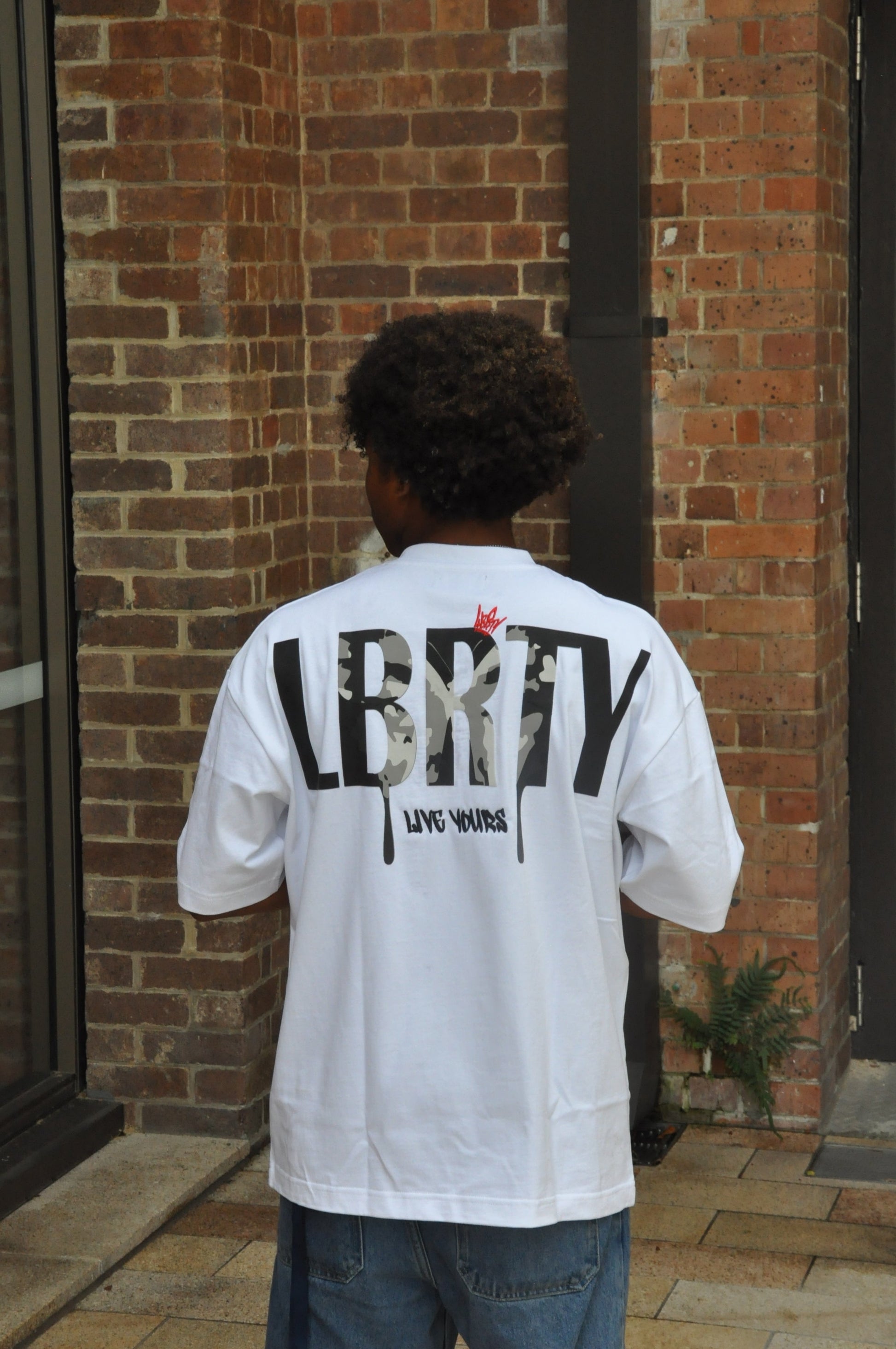 - Large 'LBRTY' text print on the back